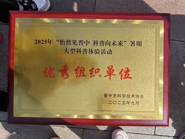 榆社县古生物化石地质公园荣获2025年“怡然见晋中 科普向未来”暑期大型科普体验活动优秀单位组织奖。